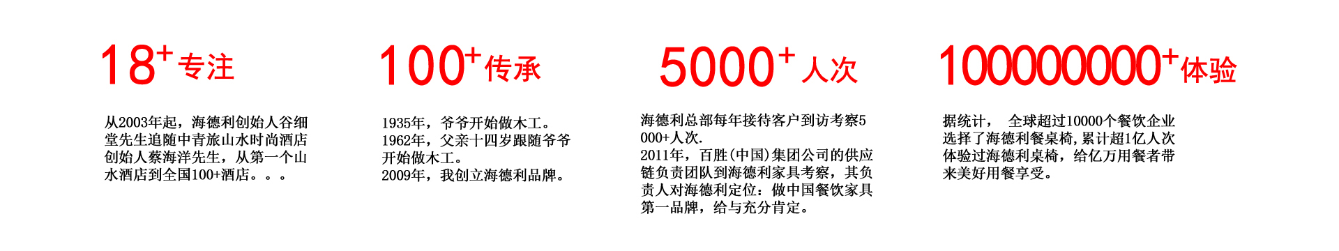 海德利總部在深圳,同時在佛山、惠陽、江門等地擁有四個生產基地。大部分家具都是自產自銷,沒有中間環節,最大限度降低成本才能給餐飲企業最實惠的產品價格。